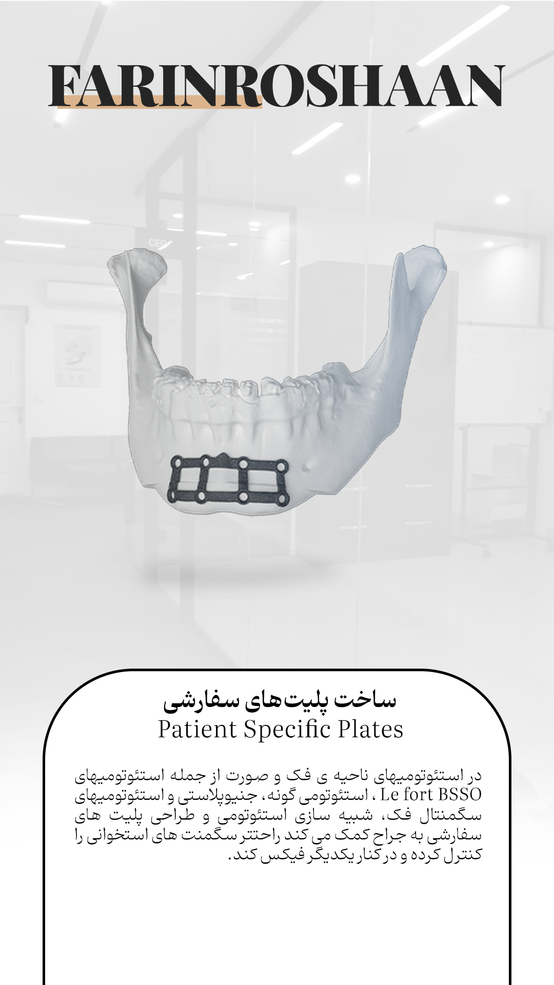 شرکت فرین روشا ن طب ارائه دهنده خدمات جراحی دیجیتال به جراحان فک و صورت، پلاستیک ، ENT و جراحان مغز و